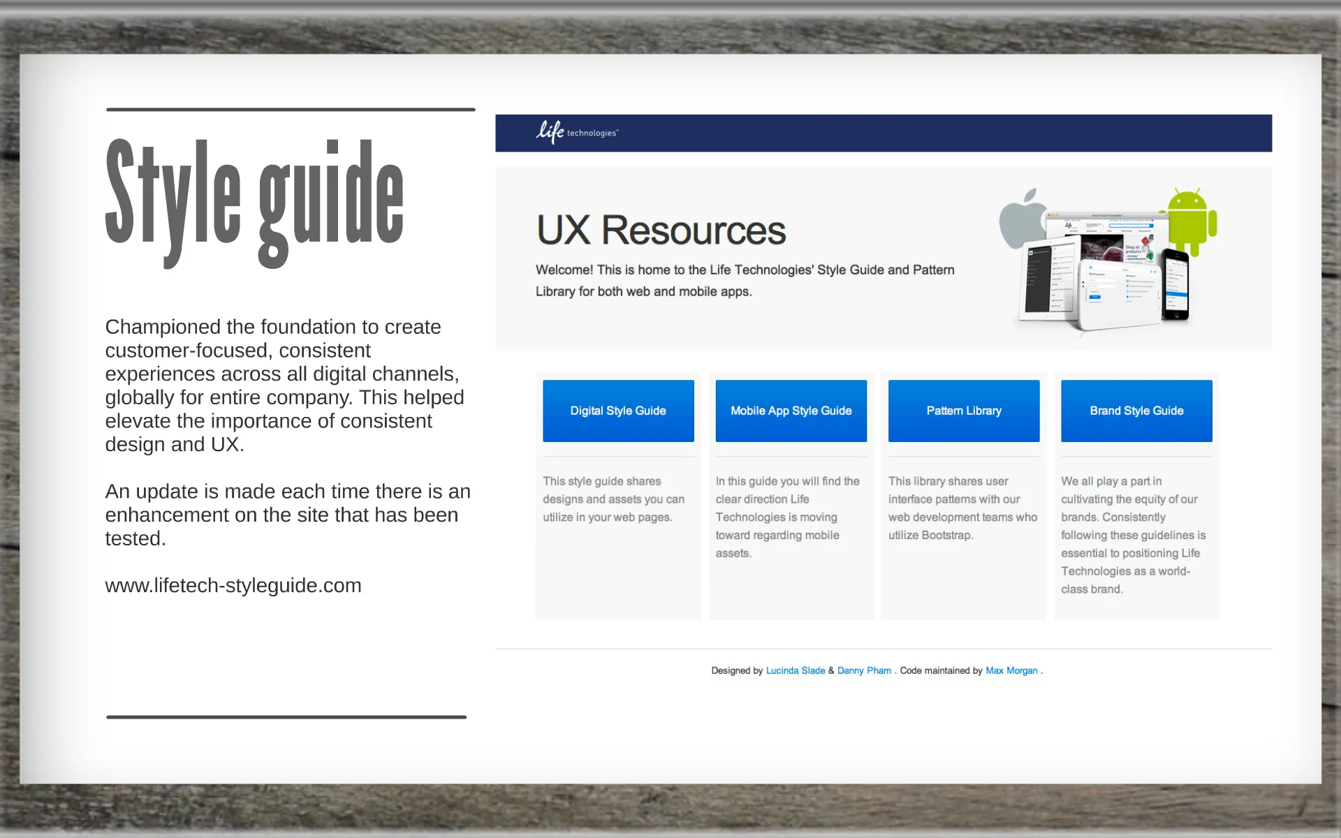 Designed, co-authored, and provided training of corporate style guide accessed by business units, production artists, and vendors global for Life Technologies.